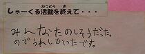 しゃーくる活動の時間が終わり、後日、企画担当の児童・生徒は、感想を書き、活動内容の報告を掲示して担当業務終了です。