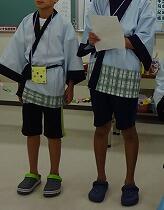 女子は浴衣を、男子は手作りの法被を着て参加しました