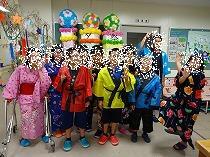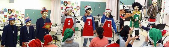 男子は緑色、女子は赤色のサンタクロースに変身!