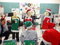 男子は緑色、女子は赤色のサンタクロースに変身!