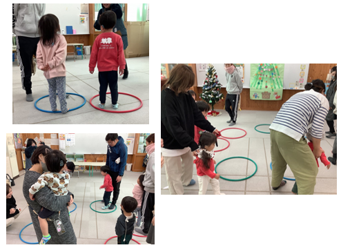 ママやパパや先生に教えてもらいながら、上手にわっかに入れました。