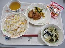 舎食紹介 3月2日の夕食は、ちらしずし・若竹汁・照り焼きチキン・そえ野菜・ひなあられでした。