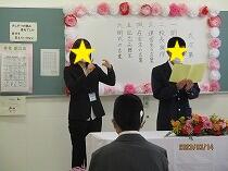 校長挨拶や、退舎生の言葉、記念品贈呈などが行われました。式後の保護者代表挨拶も含めて、感動的な式でした。