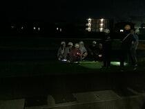 今回は就寝後の地震を想定し、部屋で寝た状態からのスタートとなりました。舎内に障害物がある状況でしたが、障害物を避け、一次避難場所であるグラウンド、二次避難場所である学校校舎2階まで、落ち着ていて避難しました。