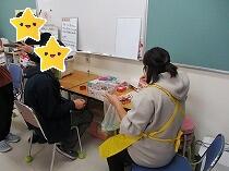 職員の年末年始の話を聞いた後、それぞれ冬休みの思い出を用紙に書き発表しました。その後は笑顔でお菓子を食べて過ごしました。