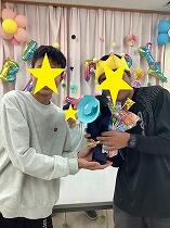 誕生カードや手作り花束をもらい笑顔が溢れ、