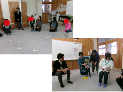 フルーツバスケットは初めての体験。絵をみてすぐに「いちご!」と気づき、鬼の言う言葉を聞いて空いている席をさがして座ることができました。おもしろかったね~!