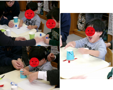 次は教室で制作活動。糊付けやシール貼りをして、ロケットの完成!高く飛び上がったときは、思わず大きな歓声があがりました。