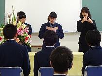 在舎生から卒業生へ花束と記念品の贈呈があり、