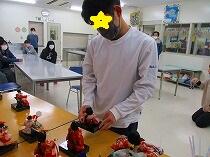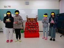 ひな飾りについて説明を聞いた後、くじ引きで順番を決め人形を飾りました。