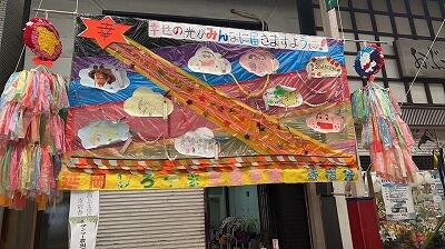 山下新天街で開催されている「のべおか七夕まつり」に出展した七夕作品は、サンコー農園賞をいただきました。寄宿舎の食堂にて子供たちに発表すると「おぉ~!」と歓声が上がっていました。