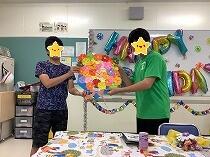 今月は9月5日(木)に8月生まれ、9月19日(木)に9月生まれの誕生会を行いました。誕生者の入場に始まり、お祝いの乾杯をした後は誕生者への質問タイムで盛り上がりました。また職員から手作りカードと児童生徒からの手作り花束の贈り物に、笑顔いっぱいの誕生会になりました。
