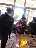 中学校の生徒が見よう見まねで手を動かしてくれました