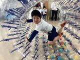 サイバーホイールの中を足だけで歩いている児童もいましたよ