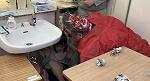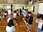 「はじめのようすです!」 「実際に使用している大きさの模型と比べました(^^)/」「代表でプレゼント贈呈!」