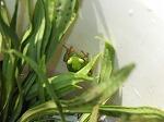 珍しいお客さんがいらっしゃいました。そのお客さんは何と『アオガエル』でした。先日授業中に教室の外から『ケロケロ』と鳴き続ける声がして、子どもたちが教室の外を探すとかわいい『アオガエル』がいました。珍しいお客さんにみんな大興奮して、しばらくお客さんと遊んだり話をしたりしました。子どもたちのことが気に入ったのか翌日も現れて少し遊んで帰られました。子どもたちは、このカエルを『ぴょん吉』と名づけ、またの訪問を楽しみにしていま