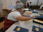 われました。1年生は校内実習で、請負作業の箱折りや袋折り、シール貼りなどに