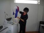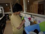 入浴後、ドライヤーで髪を乾かしてもらっています。