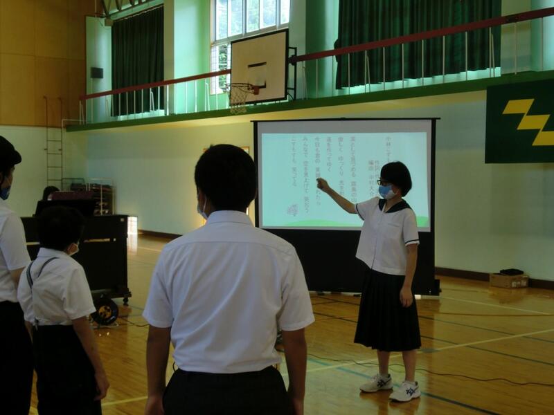 音楽の授業では、「英語」「体を動かす」「オリジナルの音」を取り入れて発表しました。