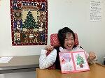 された材料でXmasカードを作り センターの役割や南海トラフ地震 知事席に座り、記念撮影。