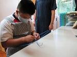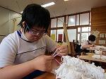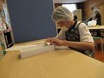 午前中は、ハンガーモップ作りや小林のお菓子屋さんから委託された箱作り、シール貼りなどに取り組みました。
