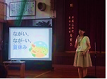 松田校長先生の話は、プレゼンを使って、みんなで1学期のことを振り返りました。みんな一生懸命聞いていました。