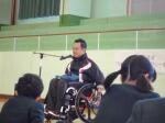 「夢をあきらめない」というテーマで、講演してもらいました。そして、講演の後は、みんなで「ボッチャ」の体験をしました。
