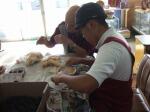 〇売り物の野菜の根切り、販売の手伝いもさせてもらいました。