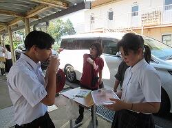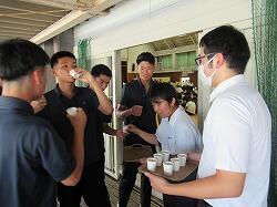 どうぞ! 小林高校の生徒さんに飲んでもらいます