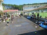 水をかけ合ったり、プールにおもちゃ浮かべて遊んだり・・・
