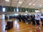本校中学部11名、東方中生徒40名で交流を行いました。初めに、それぞれ自己紹介を行い、交流活動として「人間知恵の輪」と「じゃんけん列車」の2つのゲームを楽しみました。新型コロナウイルスの感染拡大予防の配慮を行いながらマスクをしての交流となりましたが、昨年度交流ができなかった分まで楽しむ姿が見られ、笑顔あふれる時間となりました。最後に、お互いの校歌を一緒に歌い、思い出に残る対面式となりました。