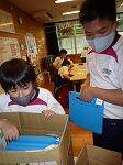 午前中は、ハンガーモップ作りや小林のお菓子屋さんから委託された箱作り、シール貼りなどに取り組みました。