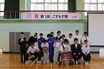 まず在校生と職員が卒業生を拍手で迎えました。この時点では3年生も少し緊張気味。会の進行は2年生です。最初の出し物は2年生のダンスです。先輩達にエールを送る意味も込めて約1か月、こっそり練習してきました。しかしダンスが始まるとすぐ、3年生達も次々と飛び入り参加。会は一気に盛り上がります。
