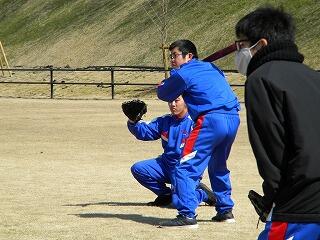 カラオケ大会では3年生が校歌をリクエスト。愛校心に 広々とした広場でボールを追いかける野球大好きメンバー。