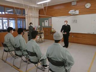 「卒業生を送る会」の中で、校歌を歌う直前に、NHK宮崎放送局の方が取材に来られました。会の中で歌った校歌がラジオでオンエアされるそうです。