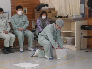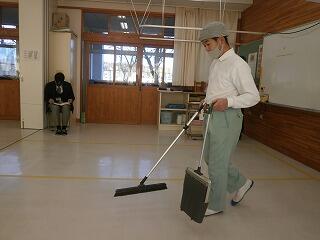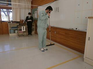 今年はメンテナンス班の生徒4名が、メンテナンス部門の「テーブル拭き」「自在ぼうき」「モップ」の3種目に挑戦しました。