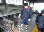 施設職員の方の説明を聞きます。 ちょうどいい大きさに薪を割ります。