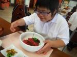 学校近くの「いちごの丘」に行き、いちご狩りをして、学校に戻り、昼食。