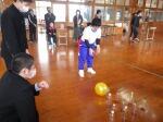 東方中学校の生徒の皆さんで作ってくれた道具で、ボウリング大会を行いました。