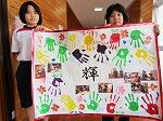 1人1人、自分の手のひらに絵の具を塗って、手形を押していきました。
