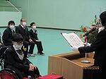 会場の拍手の中、晴れやかな笑顔で小学部2名、高等部5名が卒業生が退場しました。