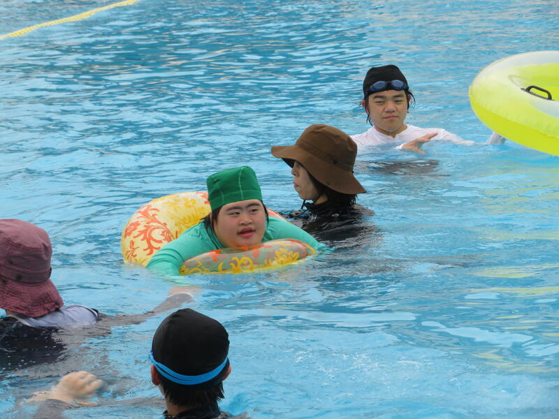 さて、お昼には、少し晴れ間も見えたところで、高等部は予定通りの水泳・・・プールで楽しそうに泳ぐ姿が垣間見られました。