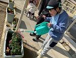 「渡り廊下に花を植え   「みんなで水やりをして大切に育てていきます(^^)/」