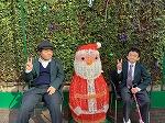 された材料でXmasカードを作り センターの役割や南海トラフ地震 知事席に座り、記念撮影。