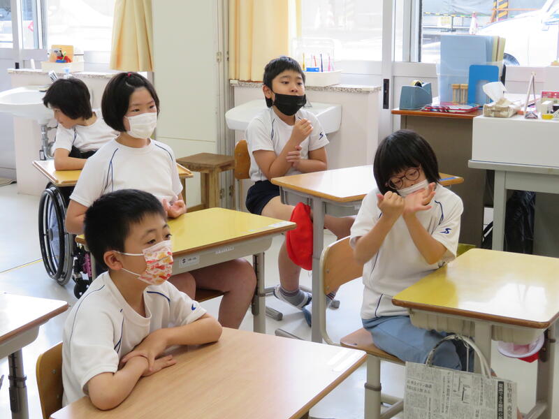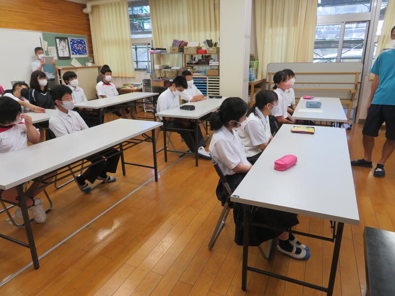 7月12日の午前中、高等部キャンパスの小学部教室で行われたクリーンこすもす交流。今年度2回目で、今回は高等部の生徒の皆さん小学部56年生の子供たちとの交流です。
