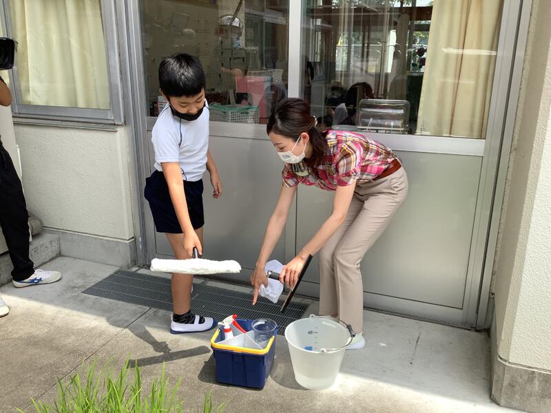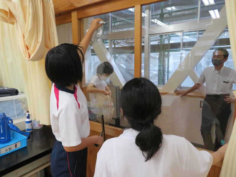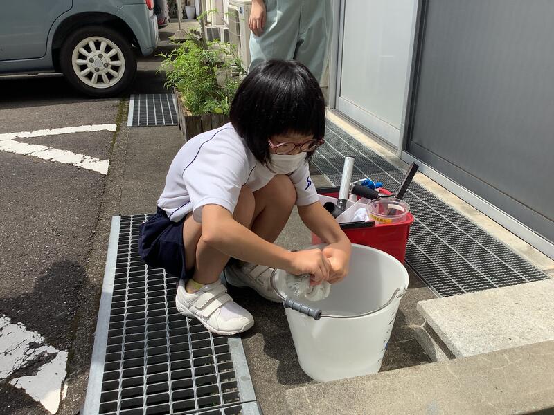 高等部の皆さんは手慣れた様子で窓拭きをきれいに仕上げていきます。