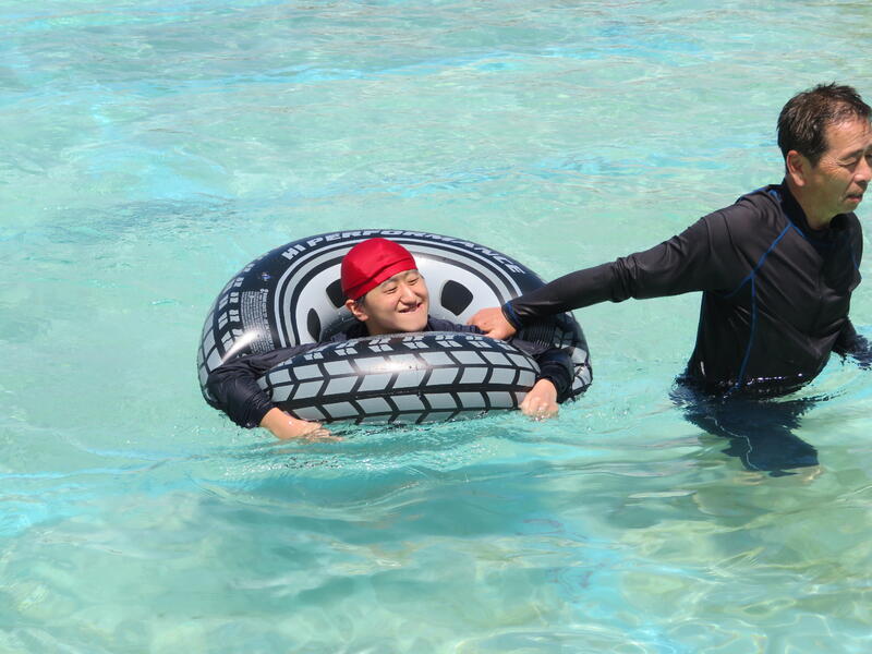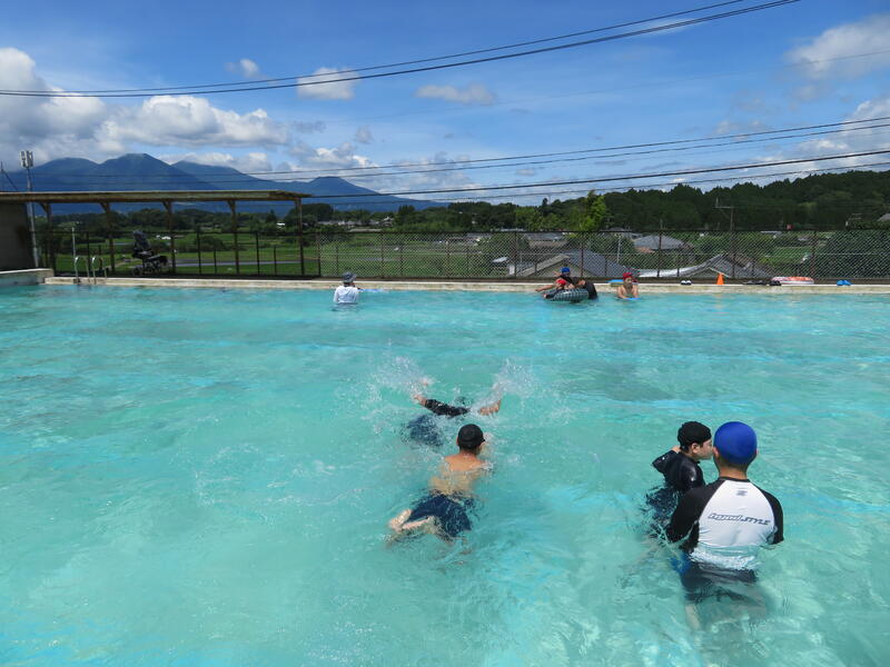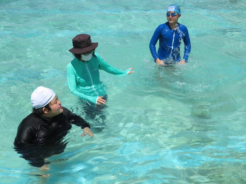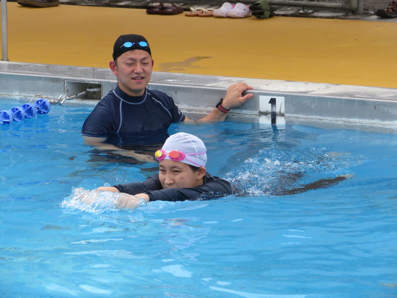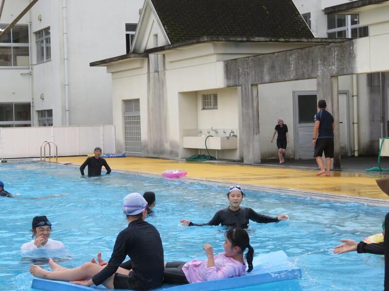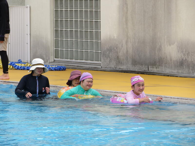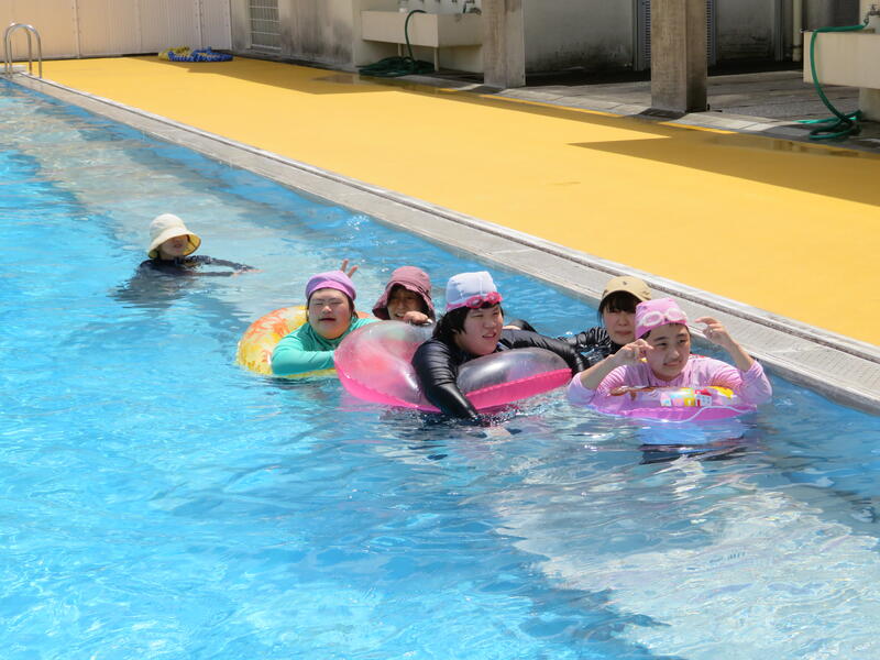 さて、お昼には、少し晴れ間も見えたところで、高等部は予定通りの水泳・・・プールで楽しそうに泳ぐ姿が垣間見られました。