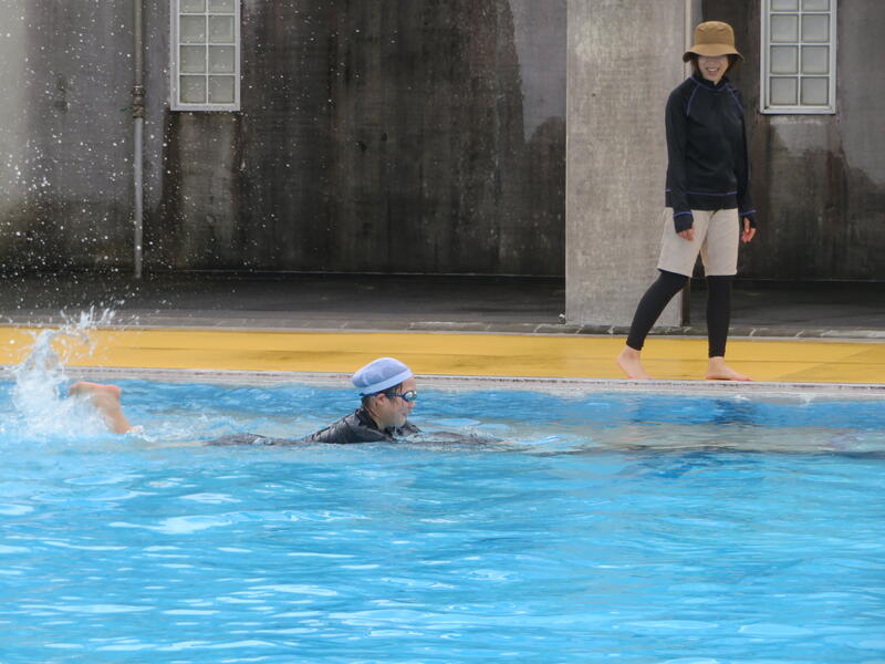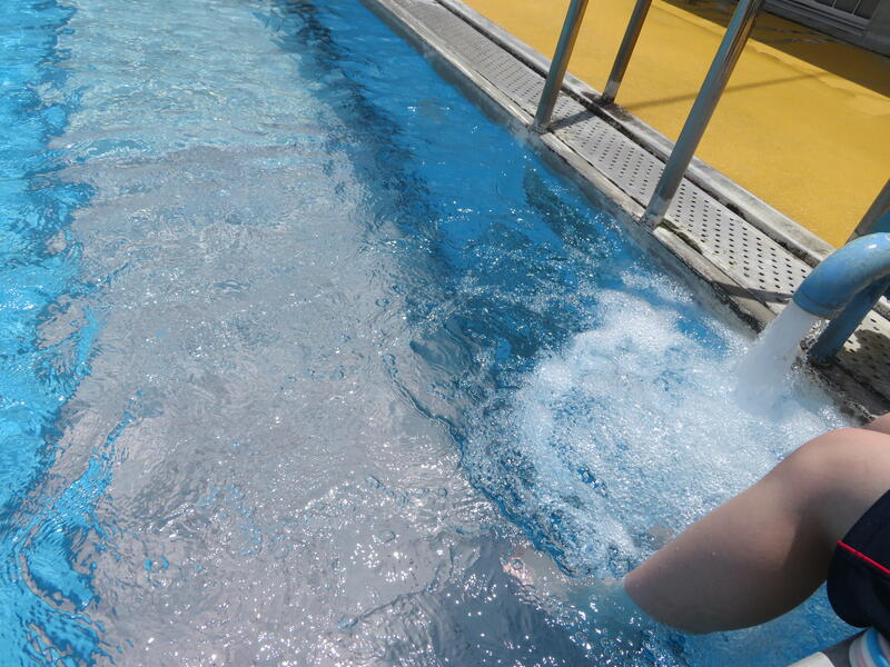 プールサイドの温度計は50度に達していましたが、水の中は快適そのもの。