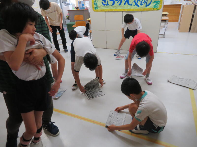 負けると、足をのせている新聞紙を半分に折り曲げることに・・・
