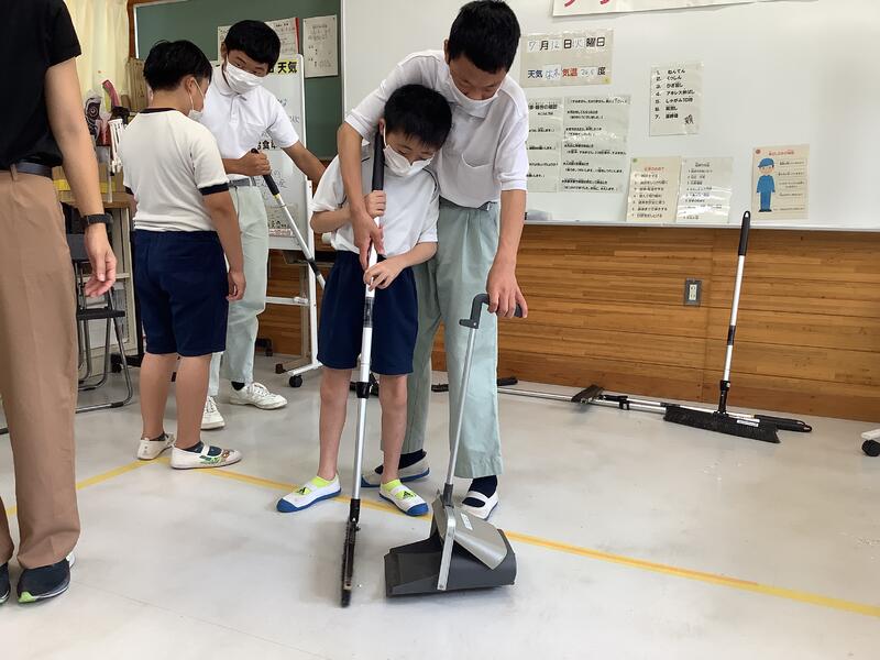 7月12日の午前中、高等部キャンパスの小学部教室で行われたクリーンこすもす交流。今年度2回目で、今回は高等部の生徒の皆さん小学部56年生の子供たちとの交流です。